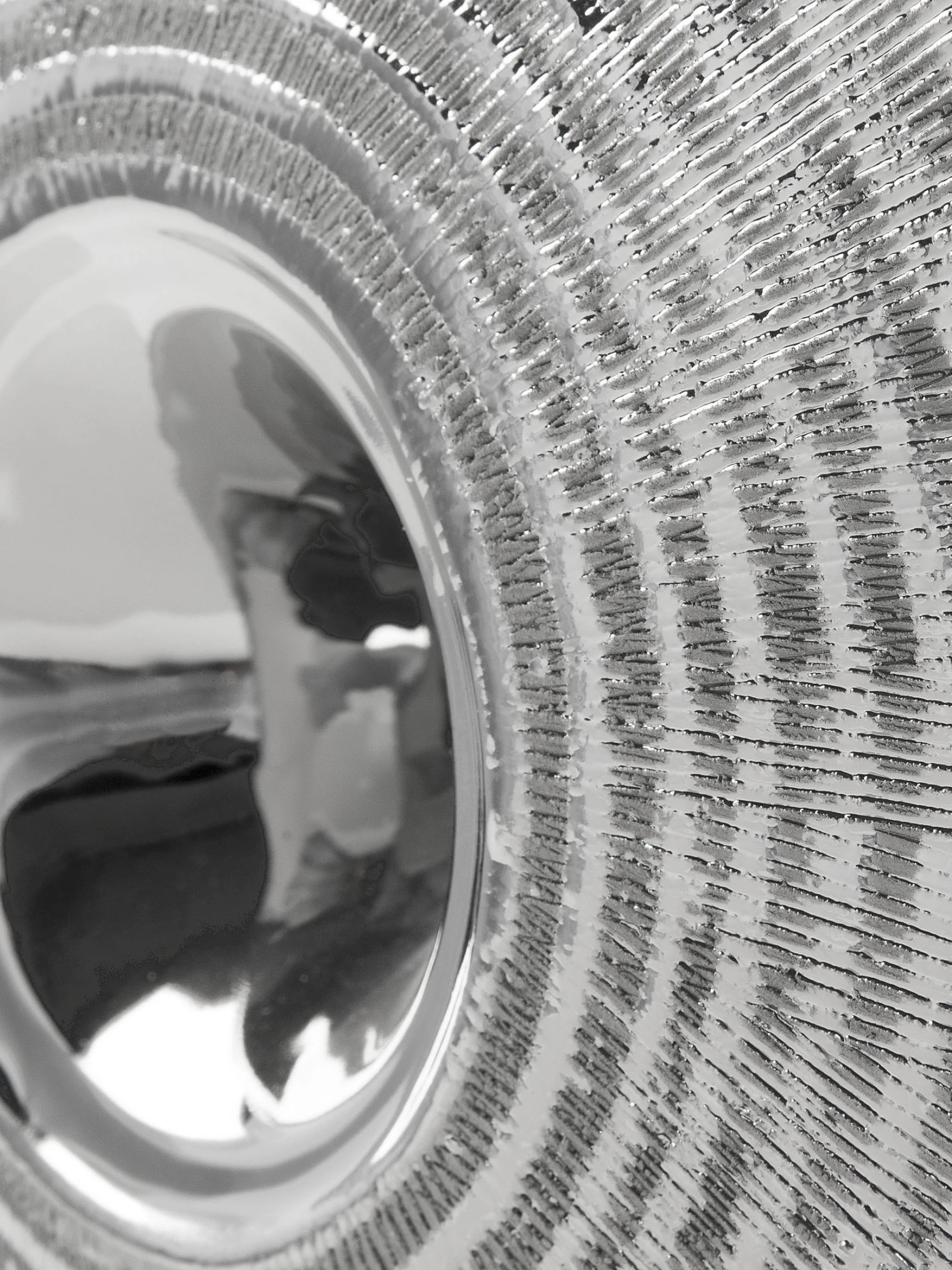 Keramikserie in silber. In drei miteinander harmonierenden Ausführungen: Teelichthalter, Vase und Schale.