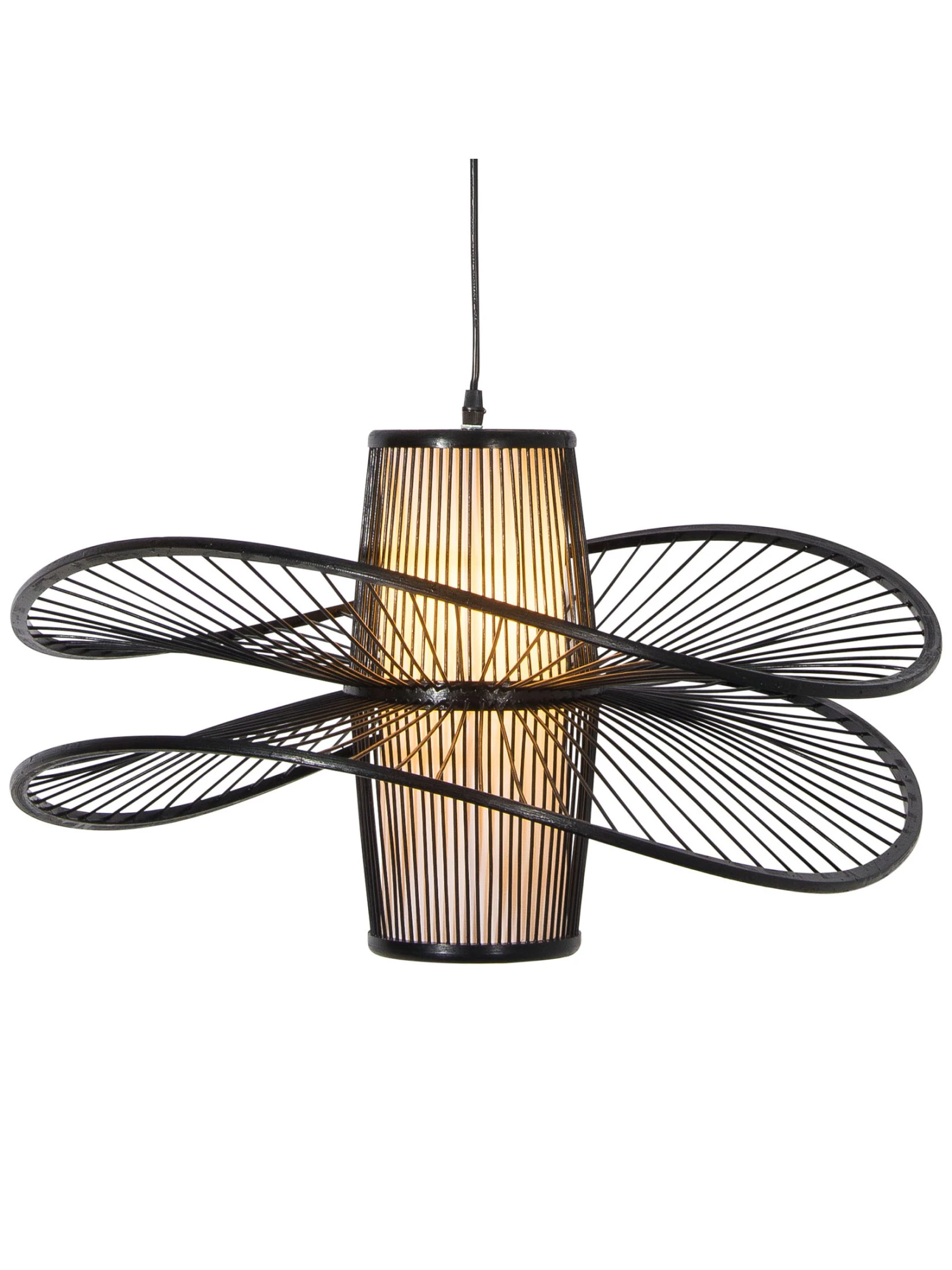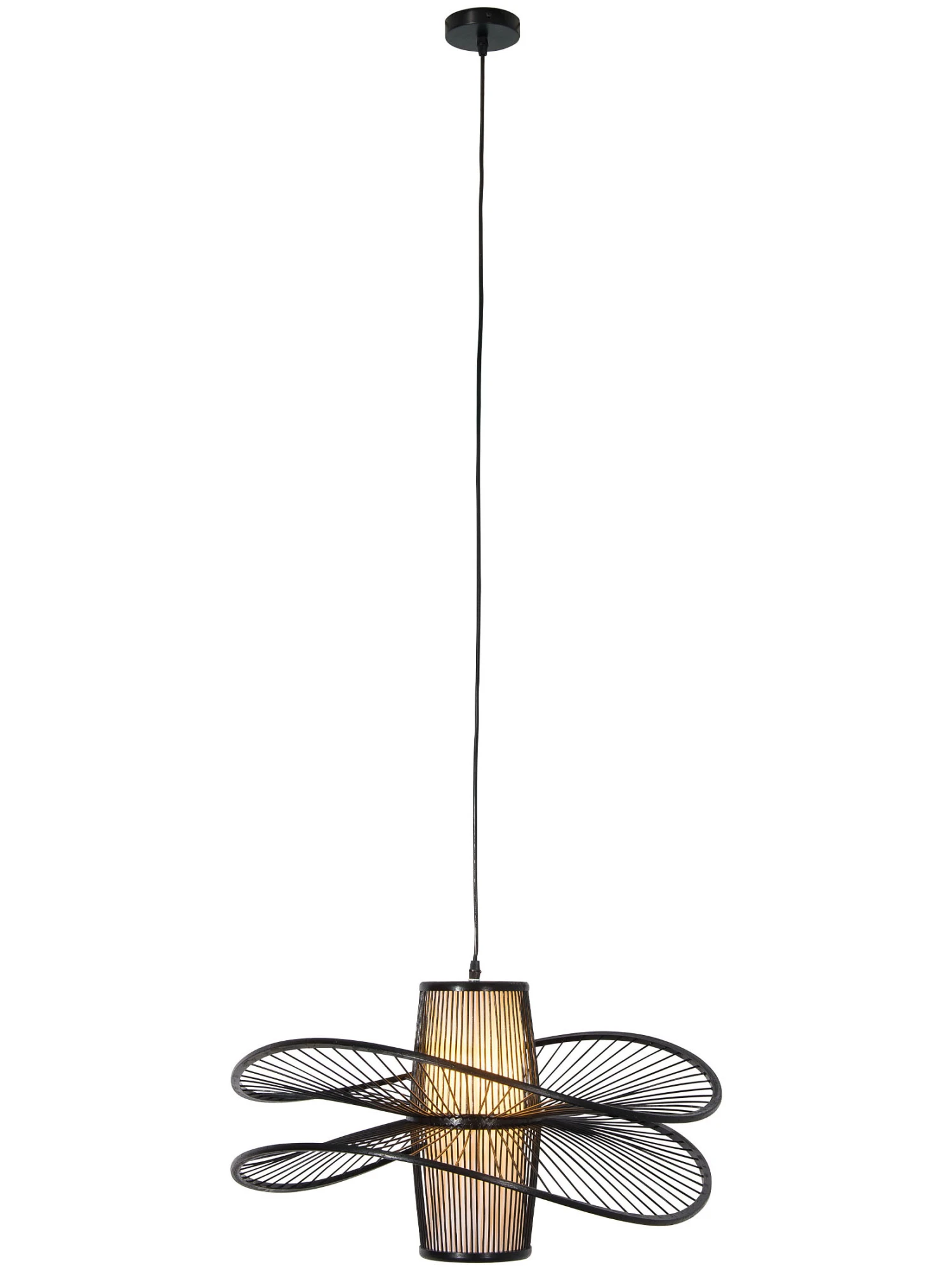 Der doppelte Lampenschirm dieser filigranen Hängeleuchte ist handgefertigt. Aus Natur-Bambus. Exkl. Leuchtmittel E27, 40W. Passend zum Japandi Stil oder zu Modern Living.