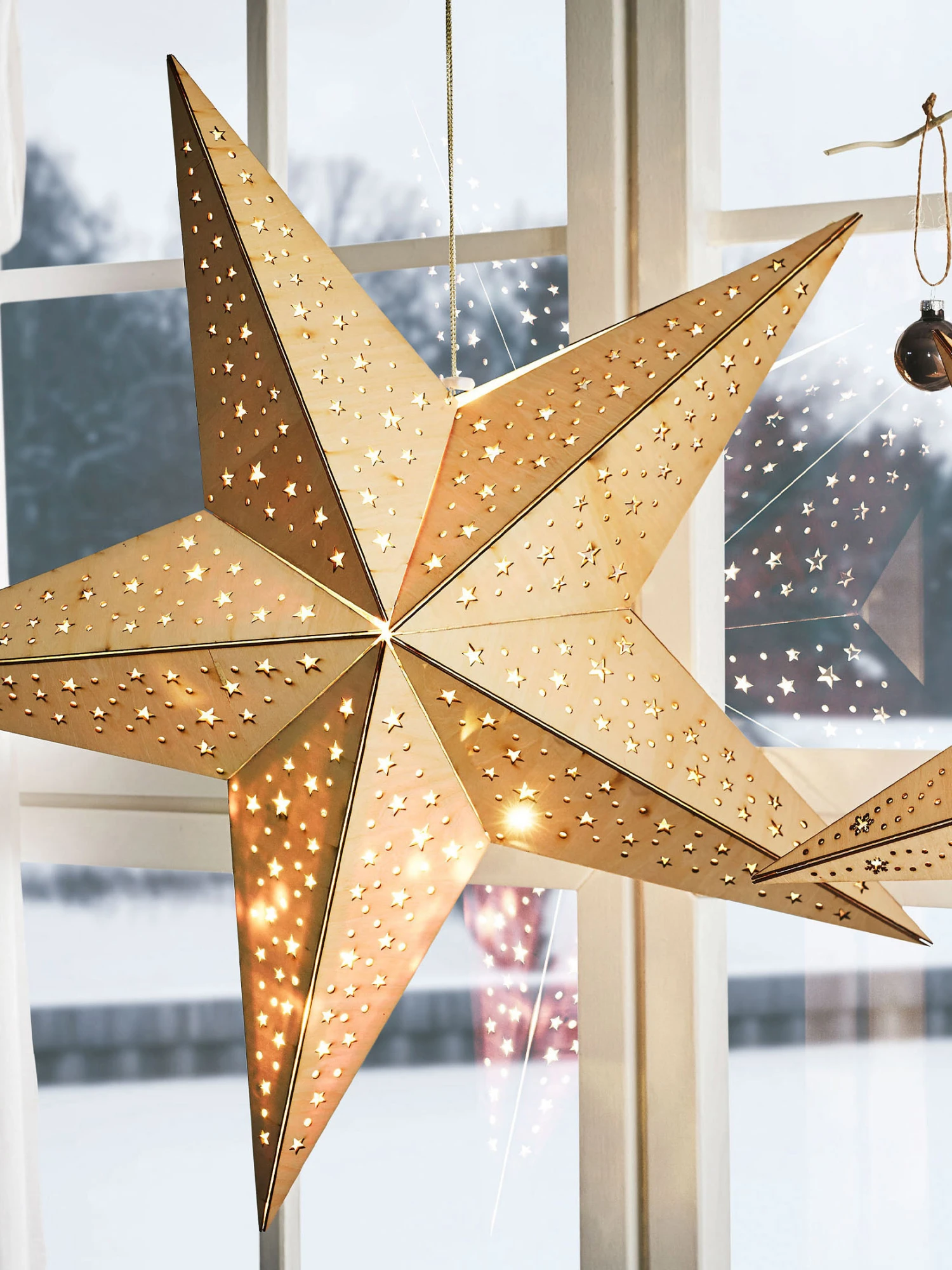 Die ideale Dekoration für die stimmungsvolle Weihnachtszeit im Innenbereich sind diese Sterne mit der LED-Innenbeleuchtung. Die Lichtfarbe ist warm weiss. Bei WOODSTAR wird ein Holzrahmen mit Papier bespannt. Innen mit 10 LEDs bestückt. Exkl. 2 Batterien AA.