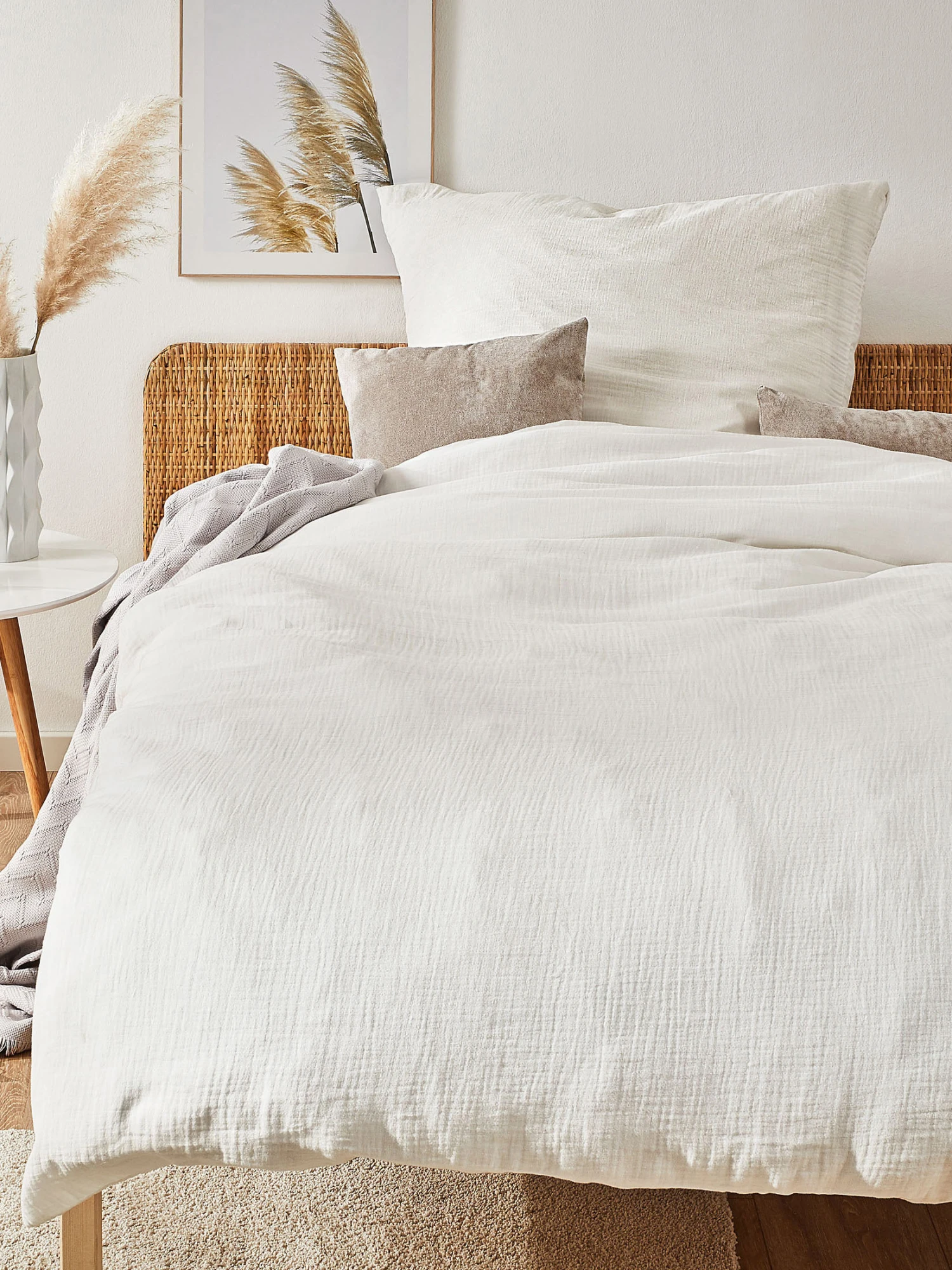 Diese Bettwäsche ist aus reiner Musselin Baumwolle gefertigt. Die extra weiche Haptik und die atmungsaktiven Eigenschaften ermöglichen einen erholsamen Schlaf. Durch den mehrschichtigen Aufbau des Stoffes kann die Luft optimal zirkulieren. Feuchtigkeit, die durch Schwitzen im Schlaf entstehen kann, wird aufgesaugt und optimal verschlossen.